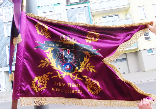 Zum zweiten und nicht zum letzten Mal begrüßen wir die Hanse Husaren aus Wipperfürth. Das kleinste Regiment der Welt hat sich im August 2015 - daher die 08/15 auf ihrer Standarte - gegründet und nimmt sich selbst nicht so ernst. Sie besitzt zwar eine Regimentstochter aber keinen Tanzoffizier, weshalb sie sich mit dem Leibgarde-Dienst präsentieren.